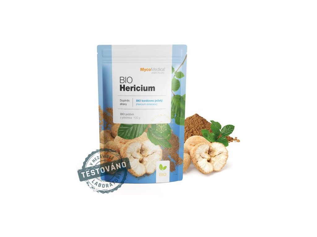 Produkt nabízí 100 % BIO prášek z plodnice Hericium erinaceus, vyrobený metodou shellbroken pro lepší uvolnění účinných látek. Každá šarže je nezávisle testována v laboratoři Agrolab. Doporučené dávkování je 1–3 g denně (1 káv. lžička ≈ 2 g), balení 100 g vystačí přibližně 50 dnů. Výrobek je vegan, bez lepku, cukru a konzervantů, vyroben v ČR.