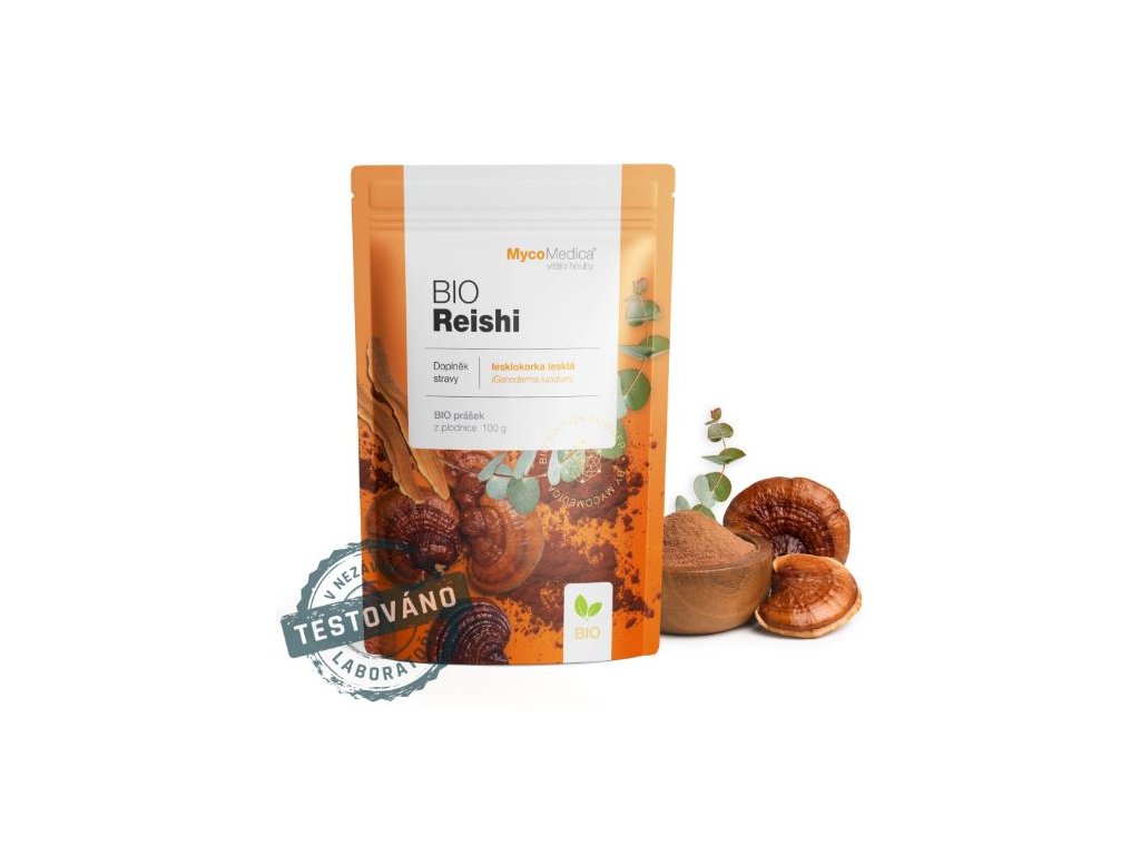 MycoMedica Reishi BIO je 100 g certifikovaného prášku z plodnice Ganoderma lucidum vyrobeného metodou shellbroken, která uvolní bioaktivní látky pro lepší využití organismem. Výrobek je bio, bez lepku, cukru, laktózy i kofeinu, testovaný v zahraničních i českých laboratořích a určený pro dospělé i děti od 3 let (vyjma těhotných a kojících). Doporučené dávkování je 1–3 g denně (1 kávová lžička ≈ 2 g).
