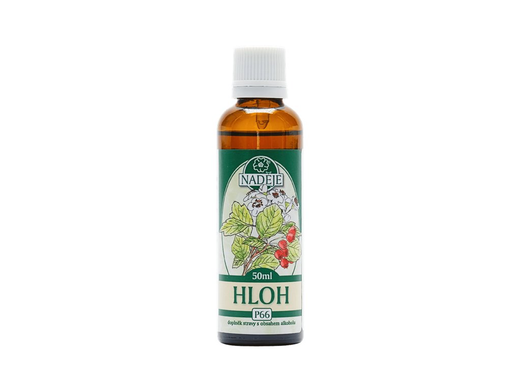 Hloh podporuje srdeční funkce a krevní oběh, zvyšuje obsah kyslíku v krevním oběhu. Zklidňuje při napětí a podráždění, přispívá k dobrému spánku. Doplněk stravy s obsahem alkoholu.Složení: voda, alkohol 40 % obj., glycerin, hloh obecný pupenyDoporučené dávkování: Po protřepání 12 kapek 3 x denně. Denní dávka 36 kapek odpovídá extraktu z 41 mg čerstvé hmoty pupenů.Upozornění: Není určeno pro děti, těhotné a kojící ženy. Nepřekračujte doporučené denní dávkování. Nenahrazuje pestrou a vyváženou stravu a zdravý životní styl. Případný zákal není na závadu.Skladování: Uchovejte mimo dosah dětí. Skladujte při teplotě do 28° C.Hmotnost: 50mlVýrobce: Mgr. Jarmila Podhorná, 798 46 Brodek u Konice 3