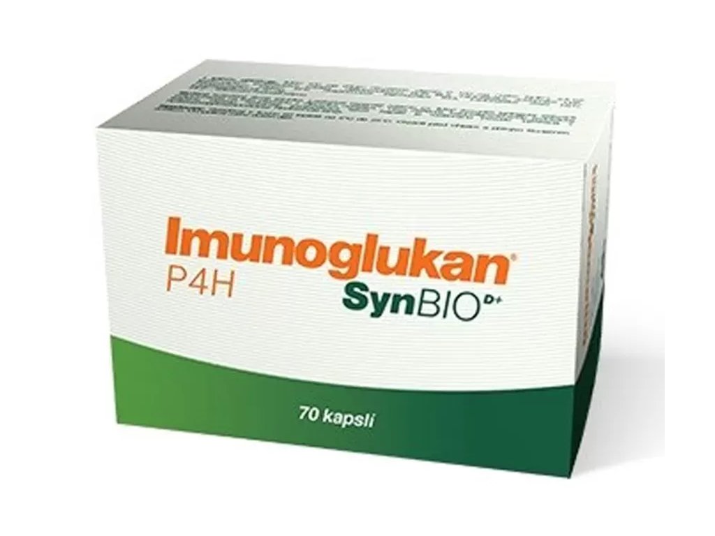 Produkt Imunoglukan P4H® SynBIO: přírodní Imunoglukan®, vitamín C, fruktooligosacharidy, bakteriální kultury, vhodný pro dlouhodobé užívání, vhodný pro alergiky a diabetiky, kasple je rostlinného původu, neobsahuje lepek.