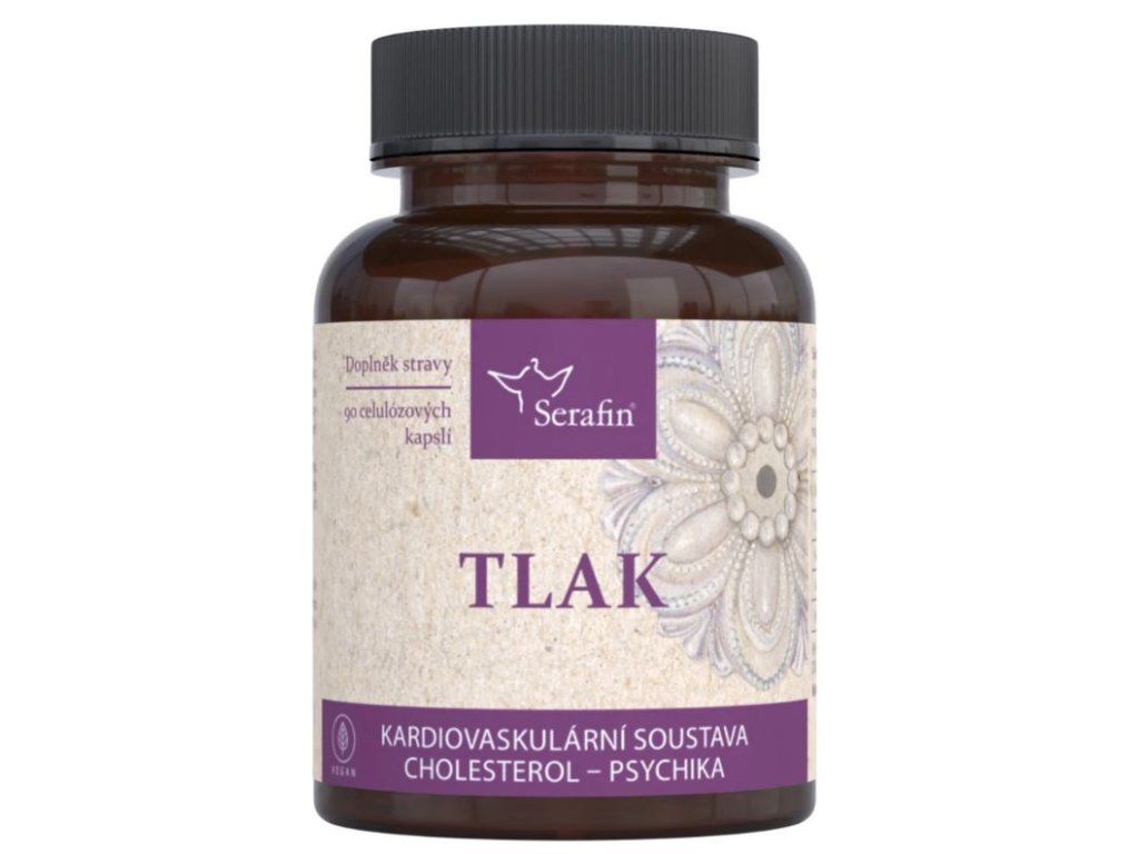 Přírodní bylinné kapsle Serafin Tlak nabízejí komplexní podporu kardiovaskulárního systému díky kombinaci extraktů a vitamínů v balení 90 kapslí (30 dní při dávkování). Produkt obsahuje koenzym Q10 spolu s B‑vitaminy a výtažky z česneku, kudzu či housenice, přispívá k normálnímu stavu krevního tlaku a zmírnění únavy. Dávkování: 3× denně 1 kapsli na lačno. Vyrobeno v ČR, není vhodné pro těhotné a kojící ženy a není náhradou pestré stravy.