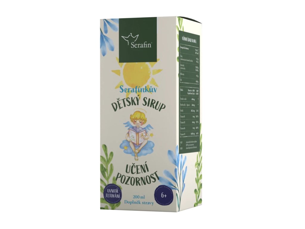 Dětský sirup Serafínkův Učení a pozornost je přírodní doplněk stravy navržený k podpoře koncentrace, mentální výkonnosti a udržení pozornosti u dětí. Díky unikátnímu složení z přírodních složek, bylin a vitamínů přispívá k lepší schopnosti soustředit se a zpracovávat nové informace, což je ideální pro školní i každodenní výzvy.