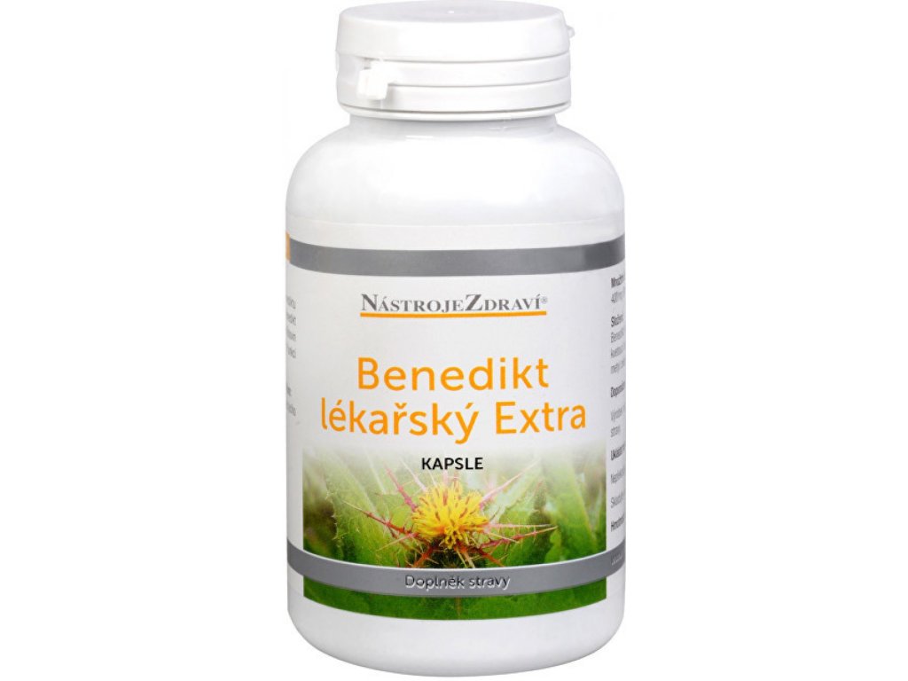 Náš tip: Benedikt se skvěle doplňuje s pískavicí. Nebojte se je užívat zároveň. 1 kapsle obsahuje 400 mg Benedikt lékařský (Cnicus benedictus L.) sušená kvetoucí nať, vegetariánská kapsle HPMC 115 mg