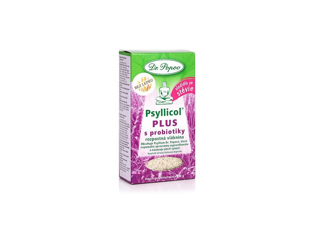Psyllicol® Plus je rozpustná vláknina Psyllium Dr. Popova obohacená o unikátní probiotické kvasinky. Psyllium Dr. Popova podporuje správné a snadné vyprazdňování, použitá probiotika dobře odolávají kyselému prostředí organismu. Doplněk stravy.