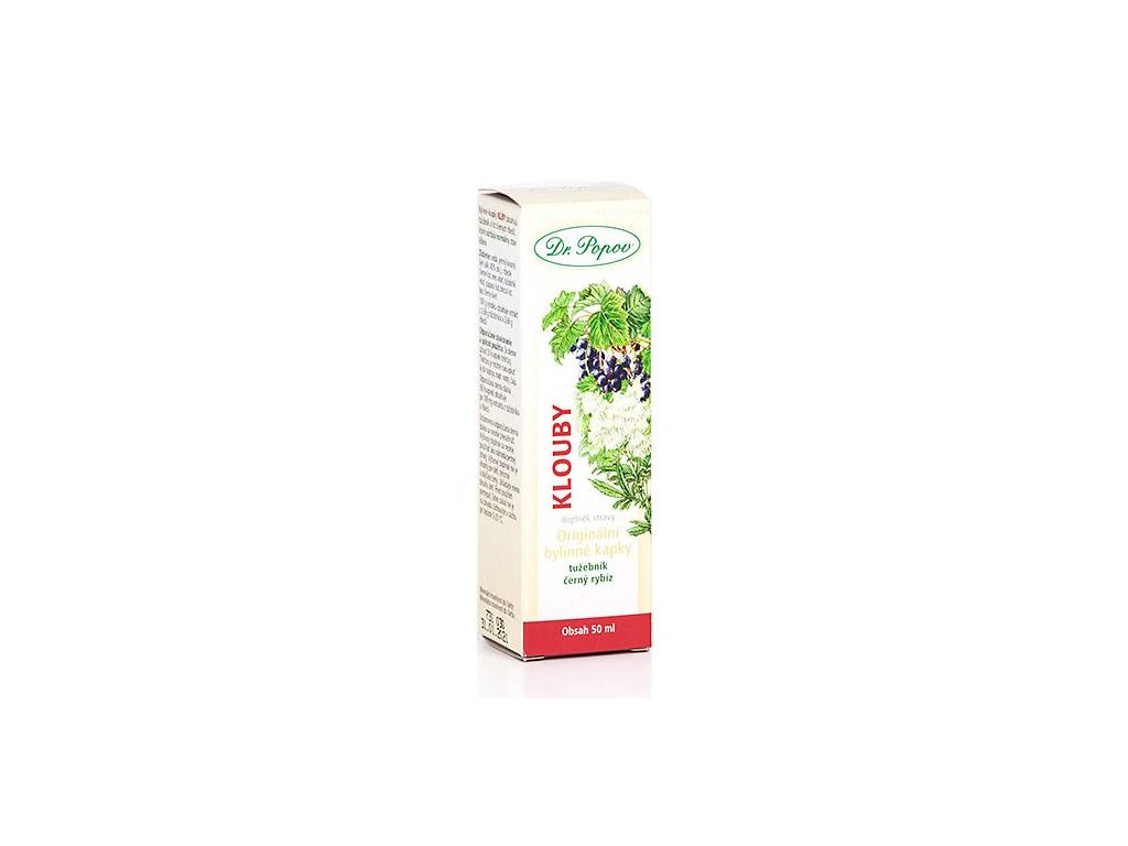 Bylinné kapky KLOUBY od Dr. Popova obsahují list tužebníku a list černého rybízu. Tahle kombinace pomáhá udržovat normální stav kloubů.