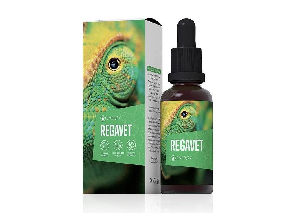 Regavet je přírodní preparát bylinného původu. Stimuluje játra, žlučník, tkáň kostí, kloubů a tukové tkáně k vyšší činnosti. Optimalizuje metabolismus zvířete a pomáhá aktivovat trávicí enzymy.