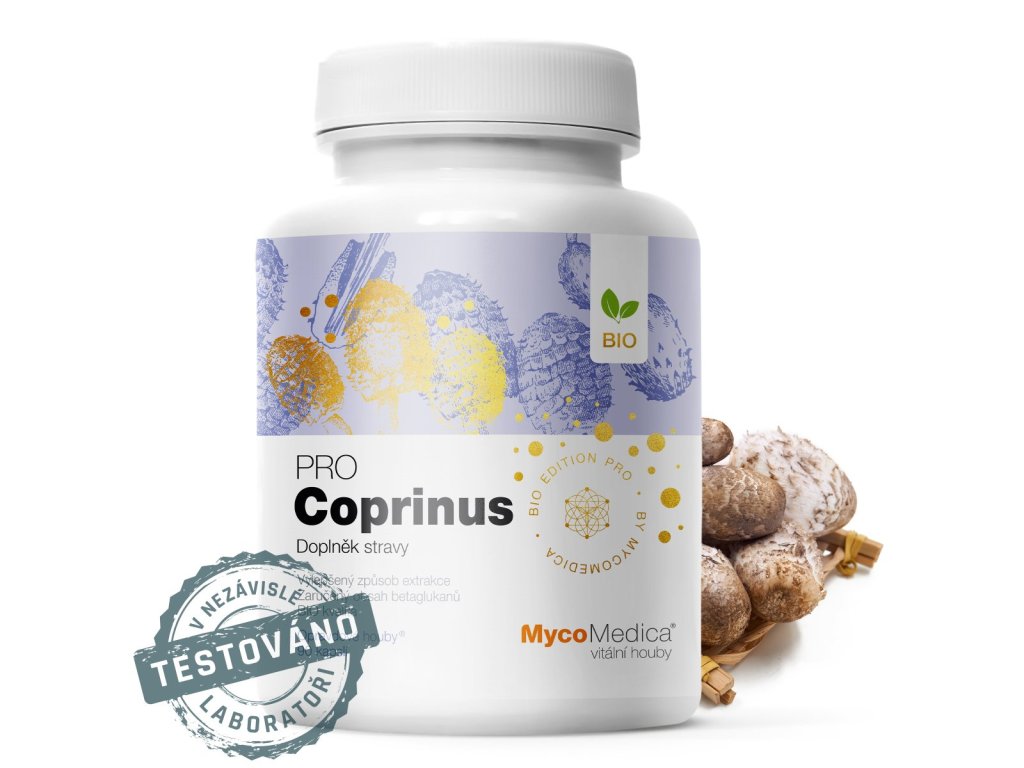 BIO Coprinus (hnojník obecný, Coprinus comatus) – kombinovaná extrakce z plodnice min. 30 % betaglukanů – 500 mg (100% čistý extrakt)