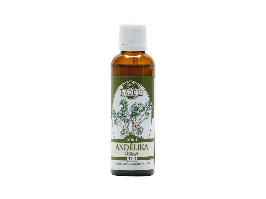 Blahodárně působí na ženské orgány – urogenitální systém. Jako antioxidant chrání kůži před poškozením volnými radikály vzniklými jako následek UV záření, stresu, alkoholu či znečištěného okolního prostředí. Doplněk stravy s obsahem alkoholu.Složení: voda, alkohol 40 % obj., andělika lékařská kořenDoporučené dávkování: po protřepání 25 kapek 3 x za den, denní dávka 75 kapek odpovídá extraktu z 960 mg čerstvé rostlinné hmoty.Upozornění: Není určeno pro děti, těhotné a kojící ženy. Nepřekračujte doporučené denní dávkování. Nenahrazuje pestrou a vyváženou stravu a zdravý životní styl. Případný zákal není na závadu.Skladování: Uchovejte mimo dosah dětí. Skladujte při teplotě do 28° C.Hmotnost: 50mlVýrobce: Mgr. Jarmila Podhorná, 798 46 Brodek u Konice 3