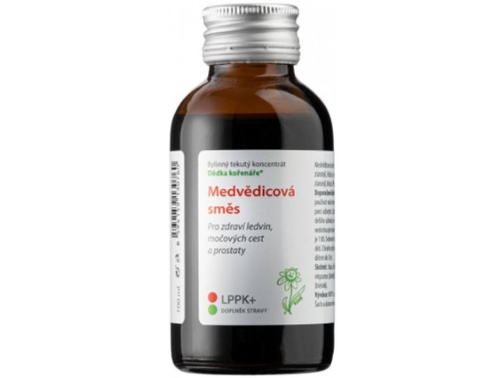Medvědicová směs obsahuje byliny, které přispívají k udržení normální činnosti močového měchýře, ledvin (medvědice, bříza) a dolních cest močových (třapatka, vrbovka). Podílí se na vylučování vody z organismu ostrop Napomáhají udržovat imunitní systém, tedy přirozenou obranyschopnost organismu (medvědice, ostropestřec, zlatobýl, bříza) a přispívají k zachování normální funkce prostaty (zlatobýl, vrbovka).